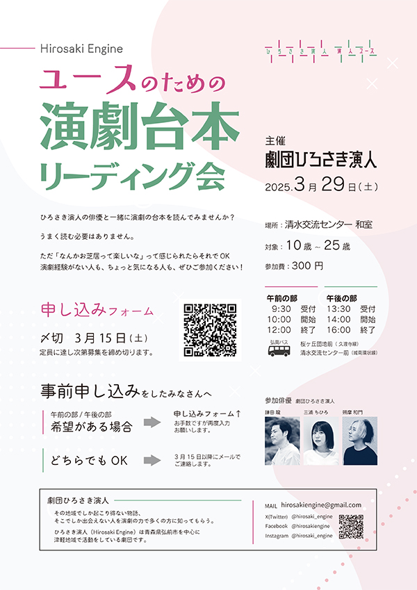 作品に関するお問い合わせは、どうぞお気軽に劇団ひろさき演人まで!